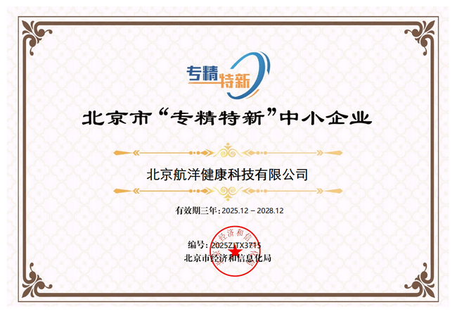 北京航洋健康科技有限公司成功通过北京市 “专精特新中小企业” 认定